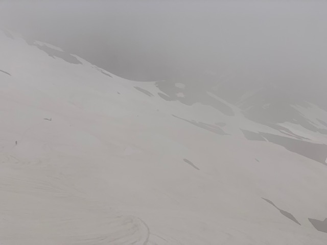 From the high point of Col de la Seigne its winter conditions and the current descent path is not the regular summer route as Its full snow cover.