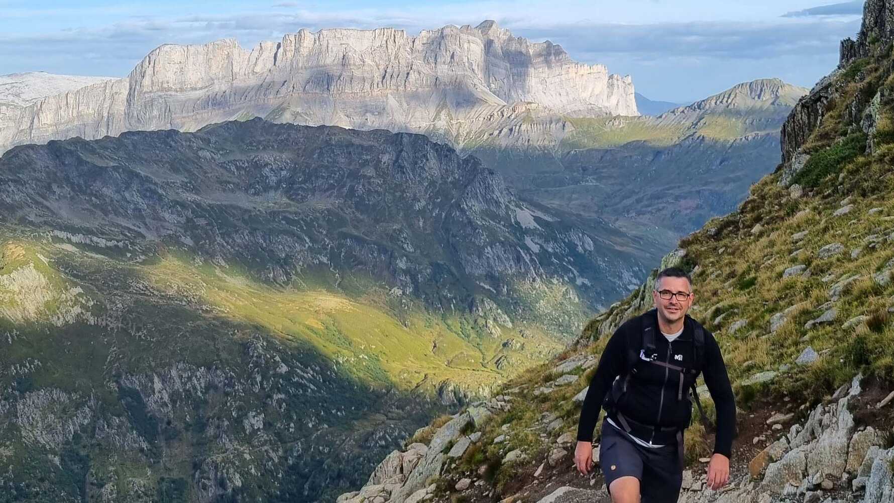 It is now gradually going uphill again because we have to get back to an altitude of 2000m. The sun is now shining directly above us. 26 degrees, almost the end of September, who could have predicted this? Fortunately, the warm clothes can be left in the backpack. Fifteen minutes before we reach the hut we pass another small community, no more than a few huts. They are Guillaume's colleagues who manage a group of a thousand sheep. With the return of the wolf to the valley in recent years, this has been a difficult balancing act. The guide tells me that they have already lost 100 sheep to the wolves this year. Nature at its best, or its worst. Our lunch break is coming, we arrive at the Moëde Refuge with the Anterne in the background which rises like a wall behind the hut.