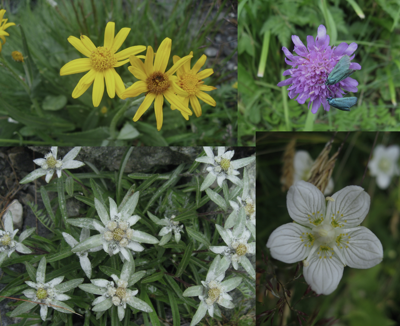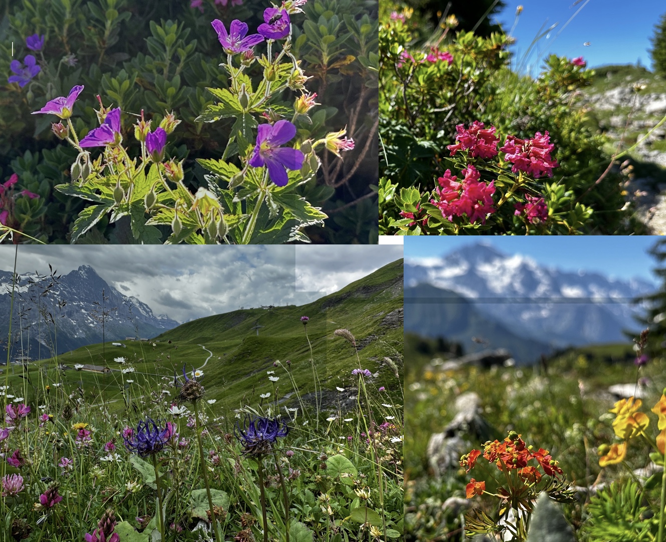 During the summer the mountains are alive with an abundance of flora of un-imaginable proportions. On the Tour du Mont Blanc alone we recorded approximately 50 different types of alpine flowers but there are many more.