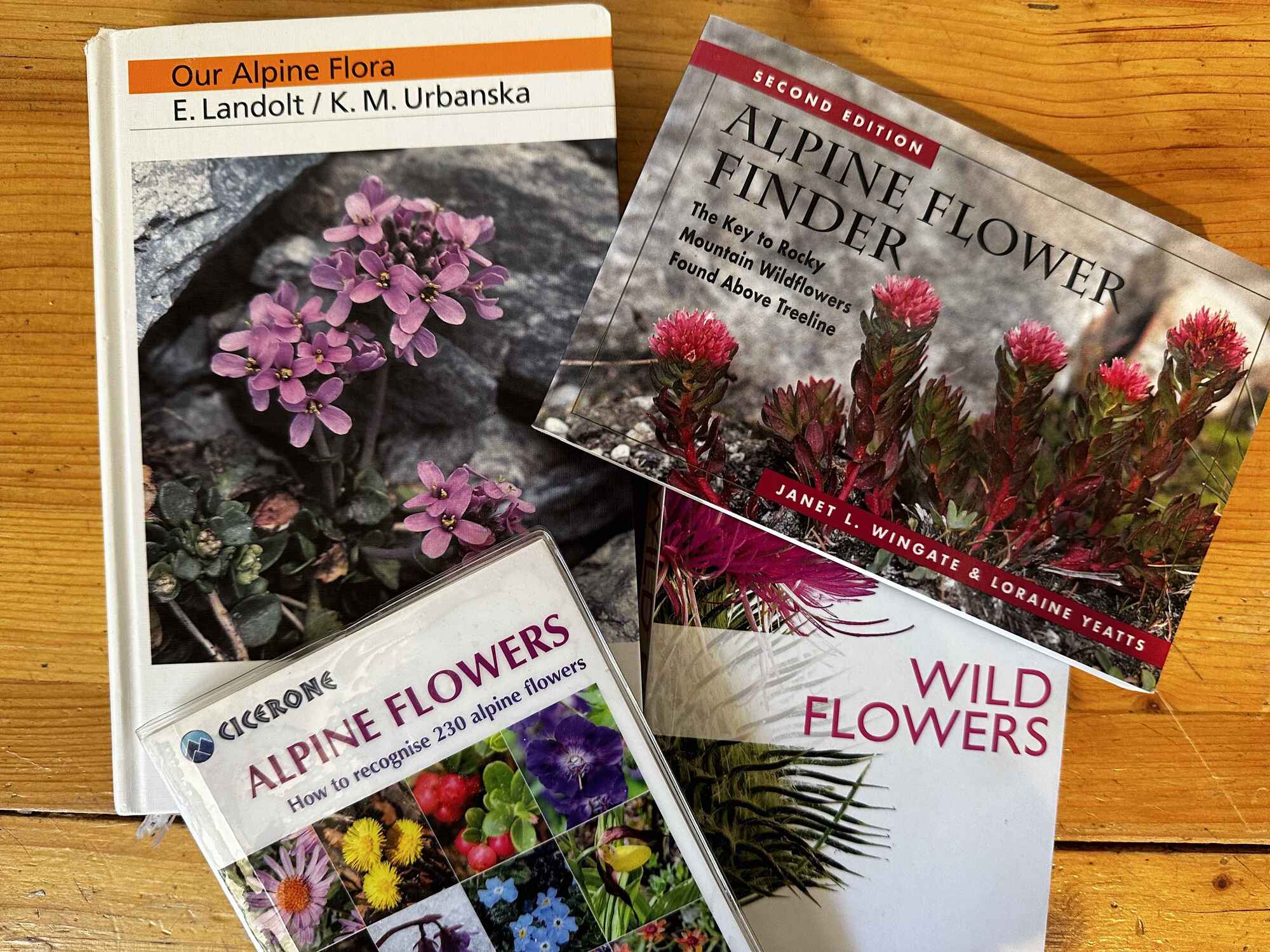 I have many books on Alpine Flora, my favourite is that published by the Swiss Alpine Club called 'Our Alpine Flora', it is the most comprehensive guide that I have found, its a bit too big & heavy for the rucksack but I often take phoros & identify them later when I get home. However; these days a flower identifyer App is an instant way of identifying flora whilst on the trail. Either way its another joyful aspect of trekking in these beautiful mountains.