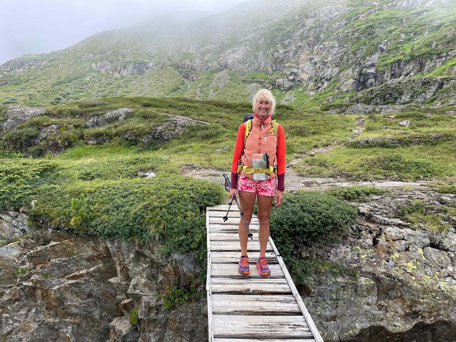 We all carry phones, and there's coverage on most of the TMB. I also carry a Mont Blanc Treks satellite phone, and an InReach device (a satellite communicator that allows you to send and receive messages, share your location, and call for help when you're out of cell phone range while trekking). Thankfully, accidents for us on the TMB are really unusual. I've not had to call out the rescue services yet. I think it's important to mention that accidents are incredibly rare, but they do happen, but on the TMB at least, we've got helicopter rescue really close by. Weather emergencies are really rare because forecasts now are so brilliant that we rarely have an emergency weather forecast, but you quite often have to change what you're doing because of the weather.