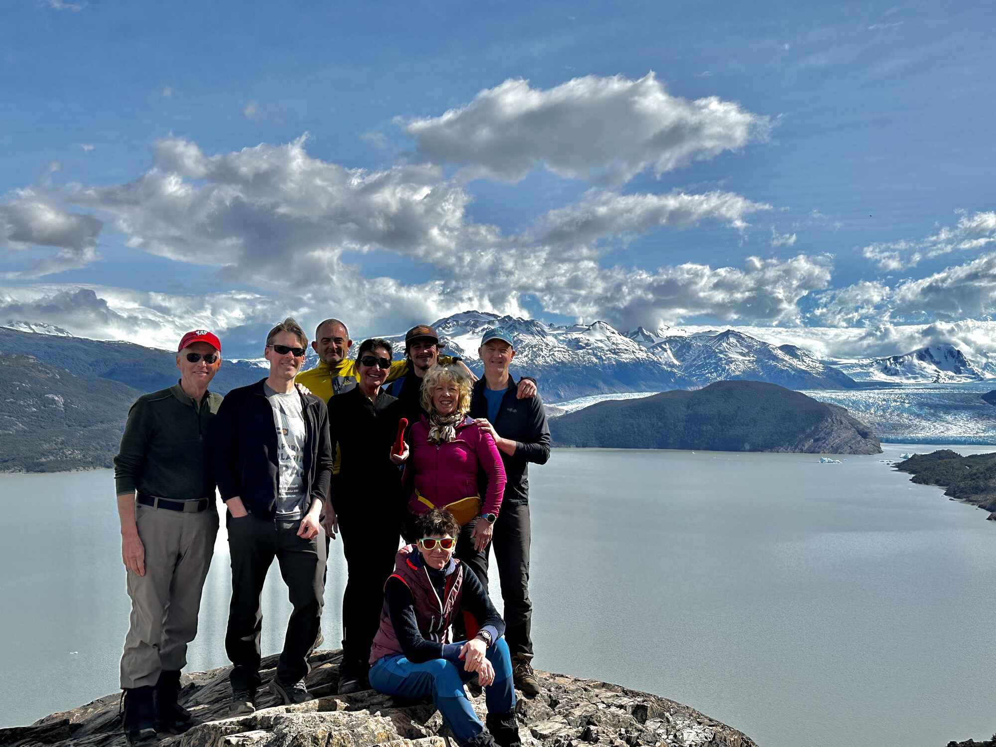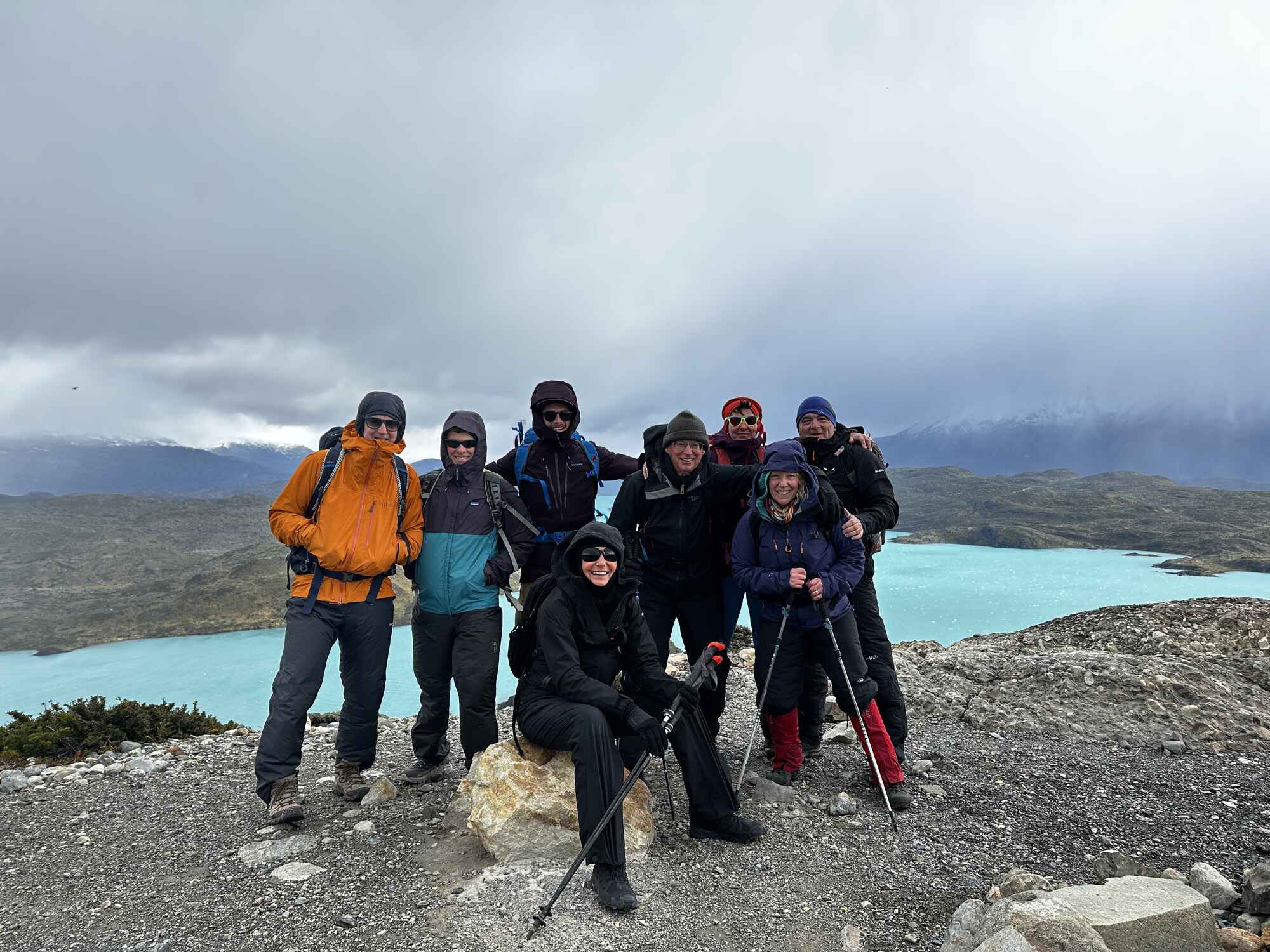 Our final day on the 'O' was set to be a wonderful and emotional one. We headed out and climbed high above Lago Grey with fabulous views looking back to the snout of the glacier. Today was special, our last trekking day in the company of such wonderful people. We arrived back at our starting point 9 days ago with incredible views of Paine Grande and the Cuernos horns. It was time to relax in the sun with a celebratory beer before catching the catamaran back over Lake Pehoé and minibus back to Puerto Natales.