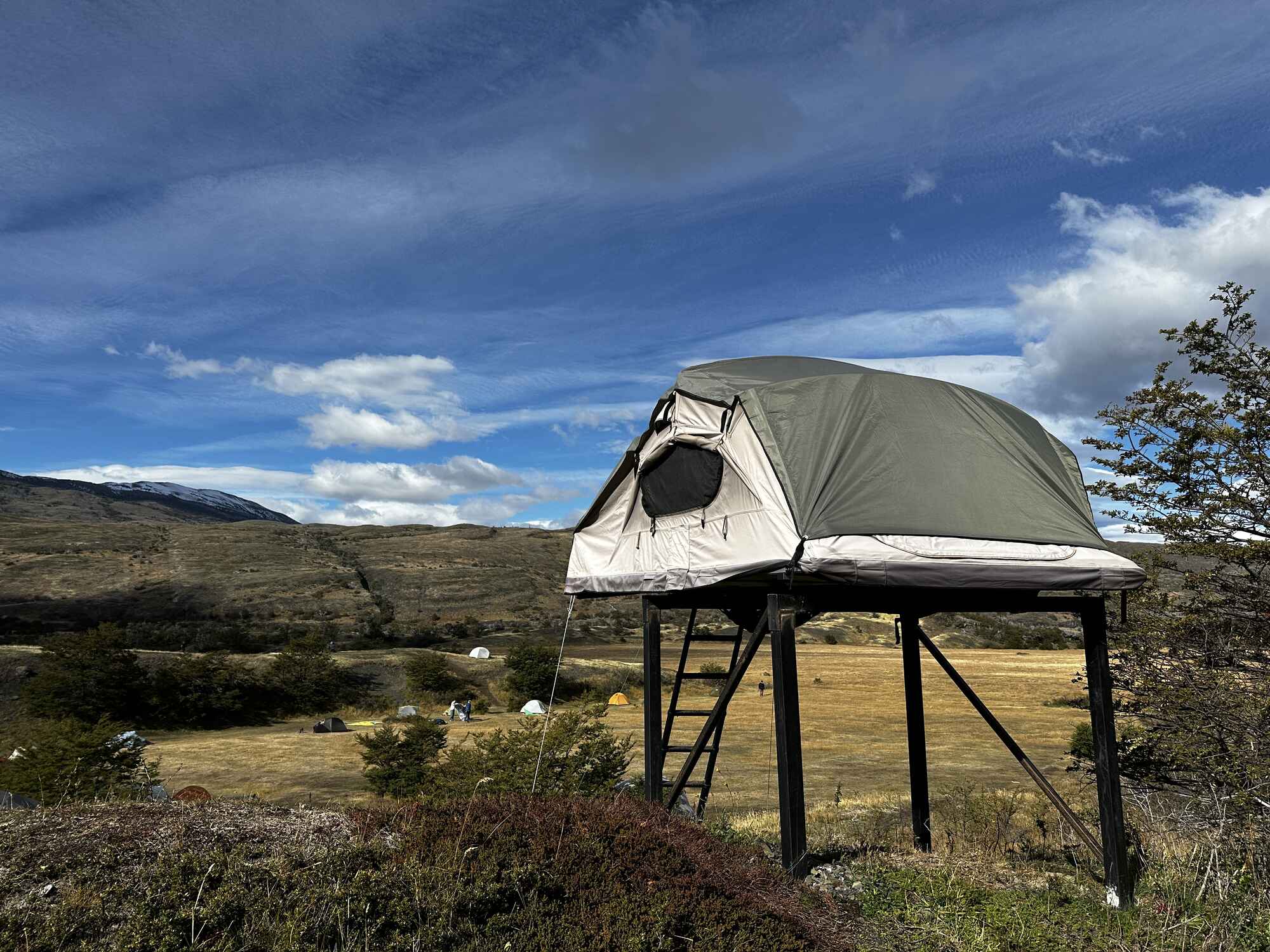 The hike from Las Torres to Camp Serón is a moderately easy trek. After a fabulous final breakfast at the Hotel Las Torres, we set out to explore the more remote section of the 'O' circuit. The trail undulates gently through open grasslands and sparse forests along the Rio Paine, offering stunning views towards Laguna Azul and its surrounding mountains. Camp Serón, nestled in a tranquil meadow surrounded by low hills, provides basic amenities and a peaceful resting spot, perfect for relaxing after a day's hike.