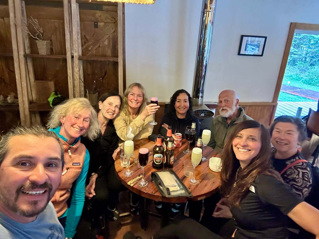 Our day 1 finishes at a campsite at Seron. The tents are new and are elevated on stilts with a ladder for access. It required some concentration getting in & out, especially in the dark, in order to avoid landing in an inelegant heap on the grass! In the warm afternoon sunshine and with beers in hand, our fabulous local guide, Sergio treated us to a long chat about the National Park and some of the history of Chile before we had dinner cooked by the staff in the refuge.