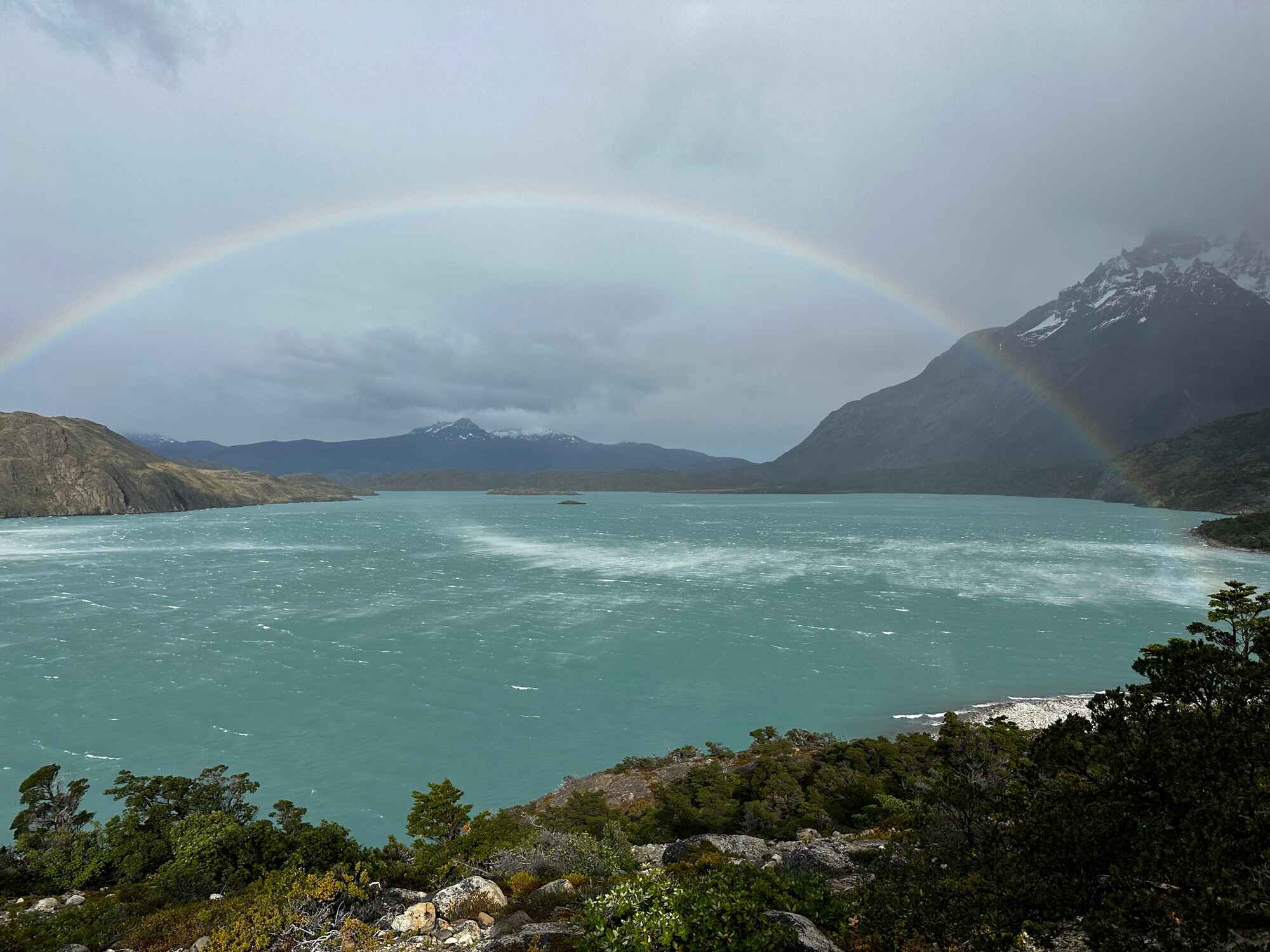 Daily stats: distance 15 kilometres, height gain +300m, time 6 hours with stops. Accommodation: Hotel, just lovely! Notes: We thought this day wouldn’t be as special as we were just traversing across from one camp to the other. In reality it was a beautiful day, fabulous views across Lake Pehoe & up towards the Paine Hornes. The weather gave us everything, showers, sun, wind and lots of rainbows!