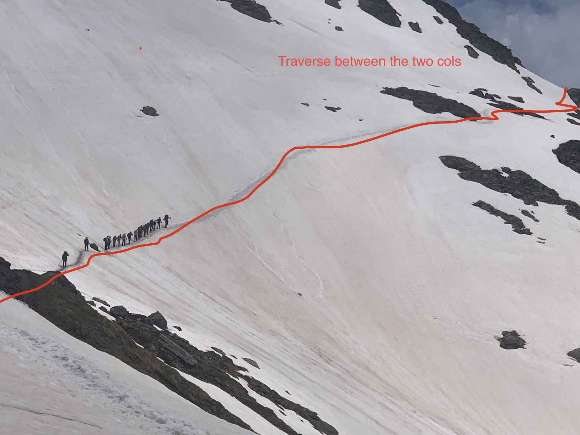 Day 9: Trient to Argentiere: Take the route direct from Trient to the Col du Blame, these is a great deal of snow on the north easterly side of the Col so care needs to be taken here, the westerly side of the col is free of snow. The rest of the route is passable.