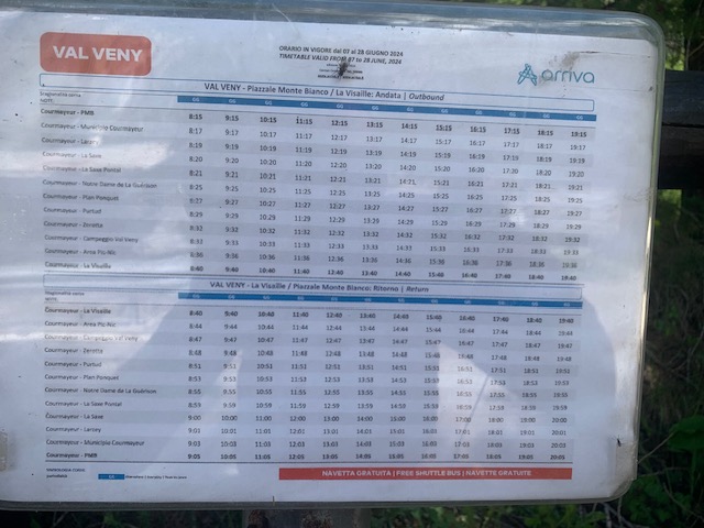 It is better to head down the valley to arrive at La Visaille and take the bus to Courmayer.