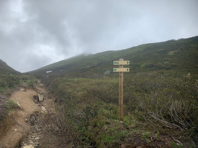 The old direct path has a lot of snow debris and is suffering from erosion. Therefore it's important to follow the signs and take the rightward trail.