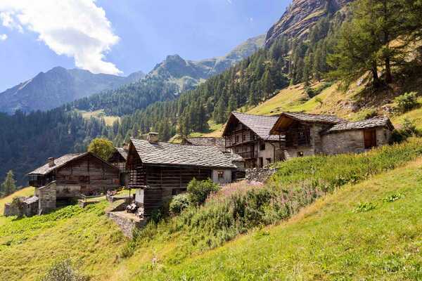 Leaving Champoluc, the trail climbs into quieter terrain, passing through traditional mountain settlements and open pastureland. This area has a strong Walser influence and a real sense of stepping into a more remote side of the Aosta Valley.