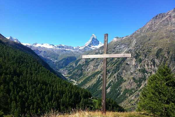 Departing from the refuge, we descend and take the impressive Charles Kuonen suspension bridge for a fitting final day. This section of the Europaweg is stunning as the trail traverses its way on exposed and breathtaking terrain. Beyond the exposed sections you reach Ottovan (2187m), where we can rest and reflect for a moment before continuing on the final section with incredible views of the Matterhorn that takes us on the high route into Zermatt (2215m).