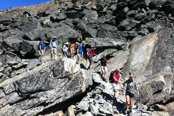 A beautiful day awaits on the lofty traverse high above the Saas valley, making our assent from Saas Fee to the high point at Lammugrabe (2329m). The route takes us through steep boulder terrain and traverses exposed steep slopes with fabulous views as far as the Bernese Oberland. The route finally changes direction and heads right above the Matterhorn valley to the village of Grachen (1619m).