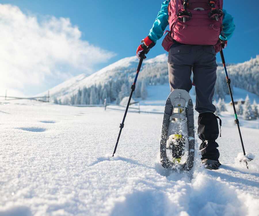 Walking with snowshoes is an excellent way to escape the crowded pistes and absorb the breath-taking winter mountain landscape.