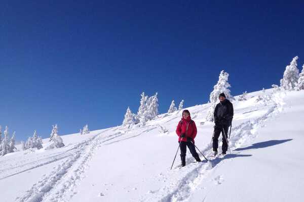 Take the bus via bus from Chamonix to Les Houches, from there you then take the Prarion télépherique to 1853m. Trek at high level through woodland and snow covered pastures away from the hustle and bustle of the ski area. Lunch stop at a mountain refuge.